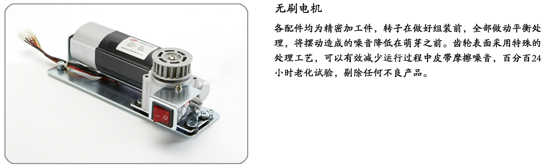 SG-系列产品是将通行者的安全作为首要考虑因素而设计的多功能智能化自动门机组,系统采用控制器集成开关电源,电压适应范围宽(AC 80V~250V)。适用于全球大部分地区,且电源具有优异的PFC电路,抗电源脉冲等干扰信号能力强,且对电网反向污染小。智能化控制器采用了16BIT高档微电脑,数据处理速度快,运算方式先进。整机具备完善的防夹、UPS、程序开关、遥控器等功能,遥控器可以设置各种运行方式如:点动,常开,半开,锁门等功能(选配)。电机采用了无刷方式,低噪音启动,具备了强大的驱动力,电机上集成了采用电磁刹车原理制作的电机锁,可以方便的实现锁门功能。