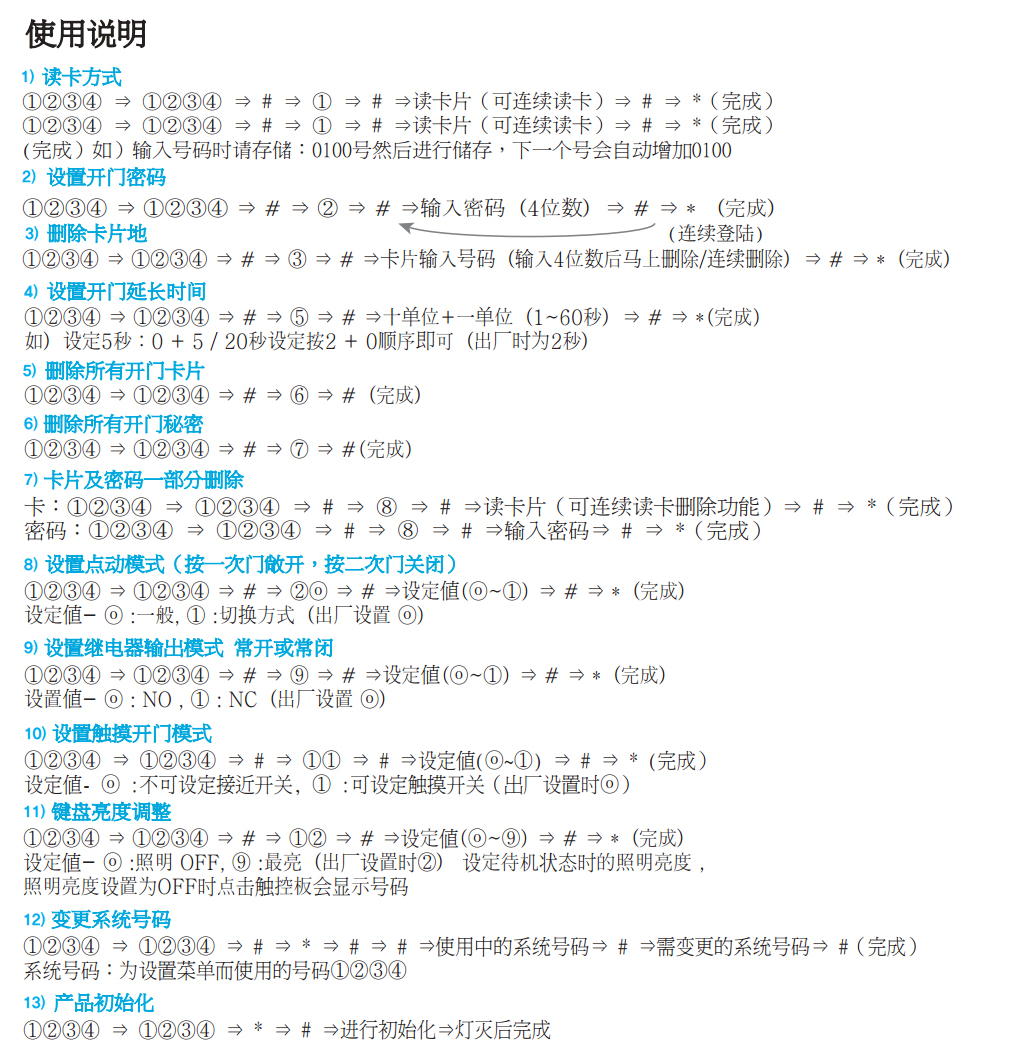 卡片/密码及读卡数